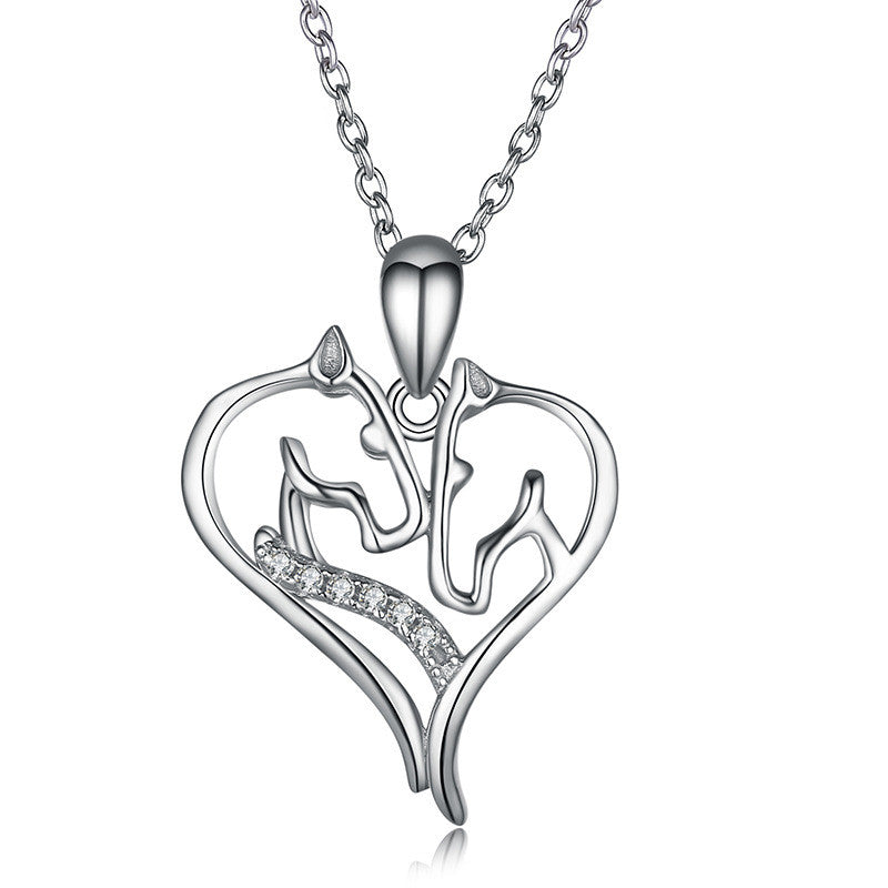 925 Silver Double Horse Head Necklace